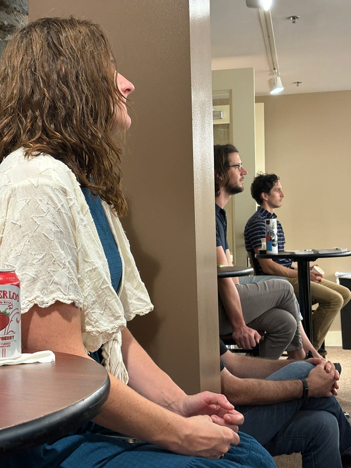 Optional: We walk across the street for more hang time at WestArt where folks can buy a coffee, espresso drink, beer, wine, cocktail, or nonalcoholic beverage.